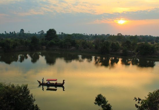 Enjoy sunset drinks at Angkor Thom whilst sailing on the complex's vast moat.